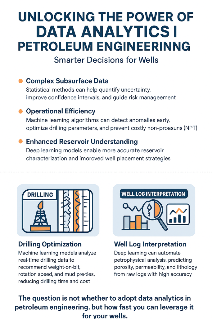 By embracing statistics, machine learning, and deep learning, petroleum engineers can unlock hidden value in their data, reduce operational risks, and maximize recovery—all while lowering costs.